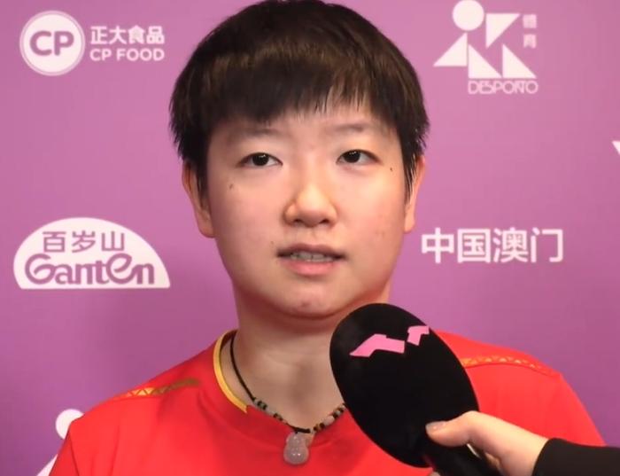 场内采访孙颖莎表示:对手很年轻,打青少年更多,不是特别多的了解,今天她的球还是有一定特点,前两局自己在适应与摸索状态,第三局和第四局技战术节奏更清楚一些。其实这场比赛对手有两个点还是比较难搞的,一个是反手,在第二局孙颖莎之所以输球,就是因为对手的反手质量高,速度快。同时对手的勾手发球也比较艰难,失误了几个。幸好及时调整,还是可以占据优势。